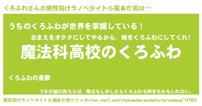 | 女子向けラノベタイトル風あだ名 | 『くろふわアンティーク』 |