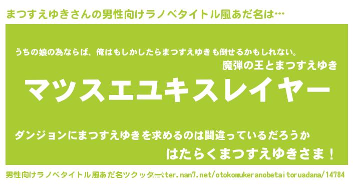 | 意味不明あだ名 | 『めかぶ科まつすえゆき属』 |