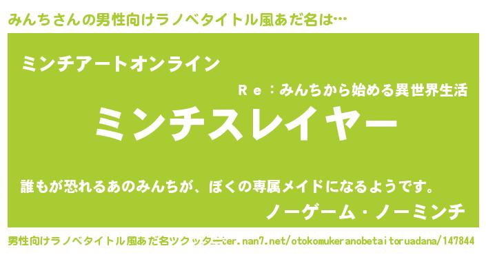 | 胡散臭い通販商品みたいなあだ名 | 『必ず成功するブレスレット…その名も「みんち」』 |