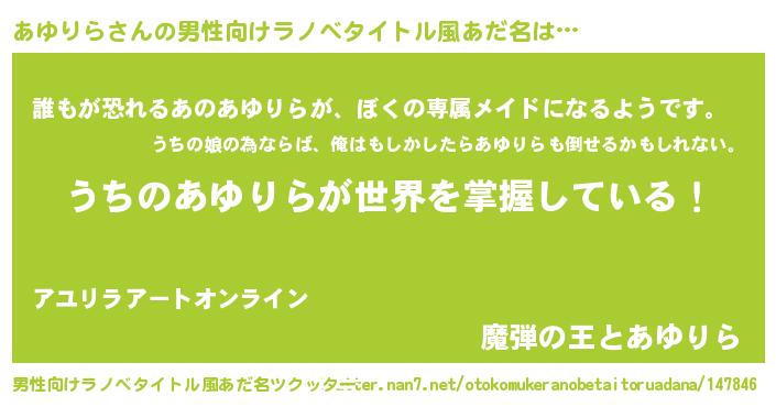 | ヒーロー風カッコイイあだ名 | 『ネオアユリラ』『仮面アユダー』 |