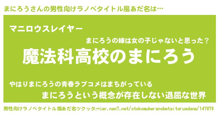 | 意味不明あだ名 | 『自称まにろう』『めかぶ科まにろう属』 |
