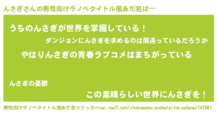 女子向けラノベタイトル風あだ名 | 『んさぎの雑貨屋さん』 |