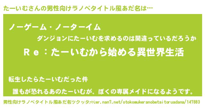 | 意味不明あだ名 | 『自称たーいむ』『永久保存たーいむ』 |