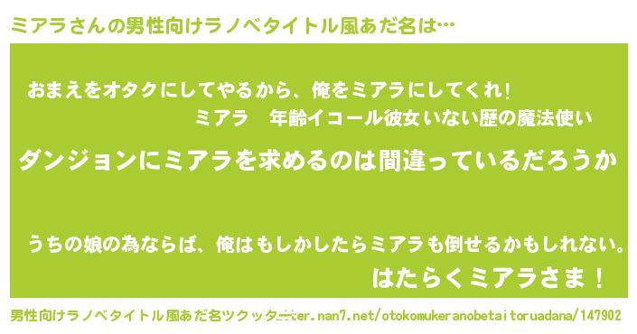 | 意味不明あだ名 | 『とにかく怪しいミアラ』 |
