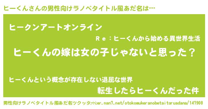 ヒーくんさんの男性向けラノベタイトル風あだ名をツクッター!