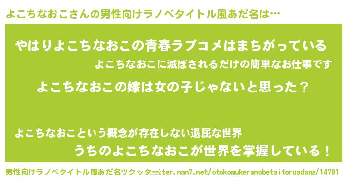 | 女子向けラノベタイトル風あだ名 | 『よこちなおこ様がみてる』 |