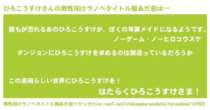 | 女子向けラノベタイトル風あだ名 | 『ひろこうすけは平凡を望む』 |