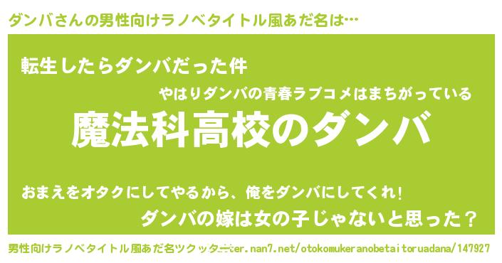 | 女子向けラノベタイトル風あだ名 | 『ダンバなんてお断りですっ。』 |