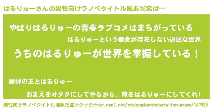 | 意味不明あだ名 | 『はるりゅーフォーエバー』 |