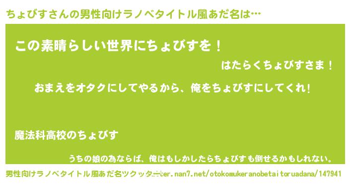 | 女子向けラノベタイトル風あだ名 | 『ちょびす夫妻のなれそめ』 |