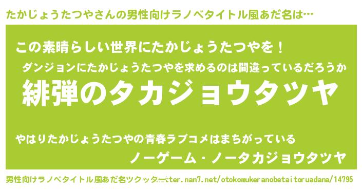 | 意味不明あだ名 | 『住所不定無職たかじょうたつや(93歳)』 |