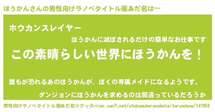 | 意味不明あだ名 | 『住所不定無職ほうかん(2歳)』 |