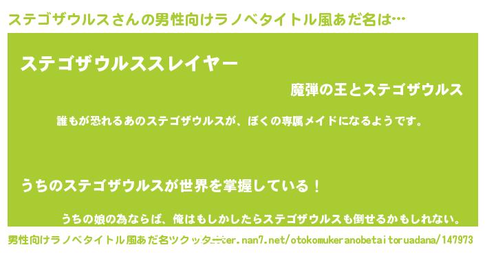 ステゴザウルスさんの男性向けラノベタイトル風あだ名をツクッター!