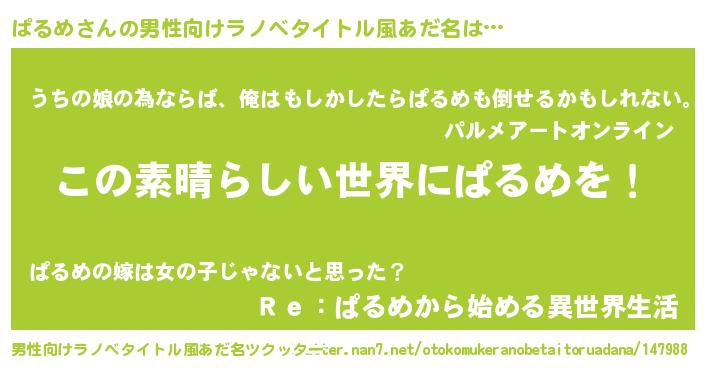 | 女子向けラノベタイトル風あだ名 | 『悪役ぱるめに転生したようですが、知った事ではありません』 |