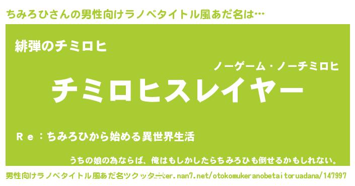 | ヒーロー風カッコイイあだ名 | 『ウルトラちみろひマン』『ネオチミロヒ』 |