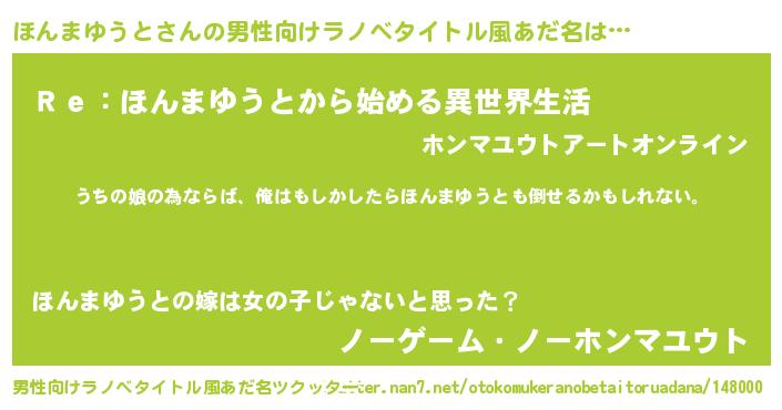 | ファンタジー風あだ名 | 『エターナルホンマユウトー』 |