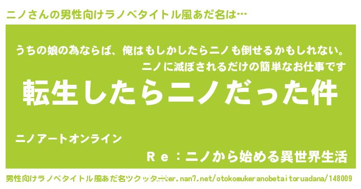 | 胡散臭い通販商品みたいなあだ名 | 『世界が平和になる高級そうな皿…その名も「ニノ」』 |
