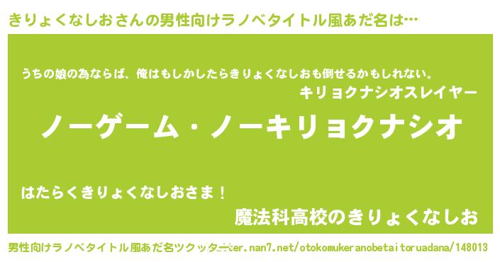 | ヒーロー風カッコイイあだ名 | 『天空の使者きりょくなしお』 |