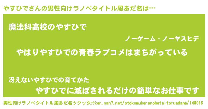 | 意味不明あだ名 | 『やすひでフォーエバー』『自称やすひで』 |