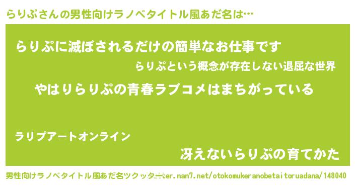| 女子向けラノベタイトル風あだ名 | 『らりぷの雑貨屋さん』 |