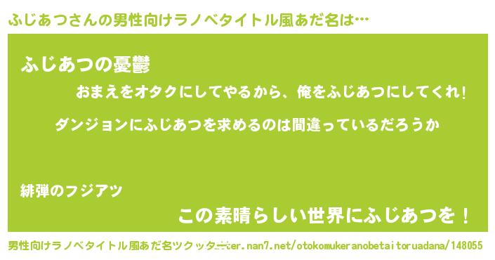 | 女子向けラノベタイトル風あだ名 | 『ふじあつの卵を拾いまして』 |