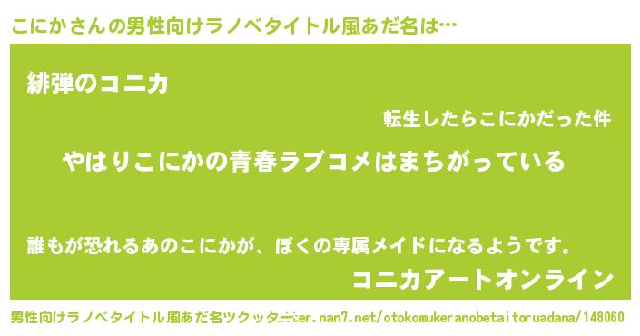 | 女子向けラノベタイトル風あだ名 | 『こにかの雑貨屋さん』 |