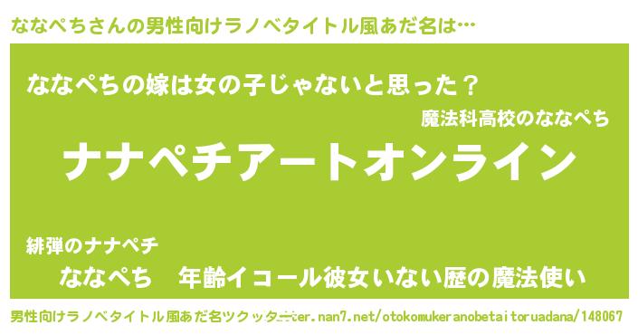 | 女子向けラノベタイトル風あだ名 | 『誰かこのななぺちを説明してください! ~契約から始まるウェディング~』 |