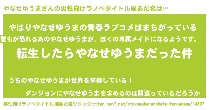 | 胡散臭い通販商品みたいなあだ名 | 『世界が平和になる高級そうな皿…その名も「やなせゆうま」』 |
