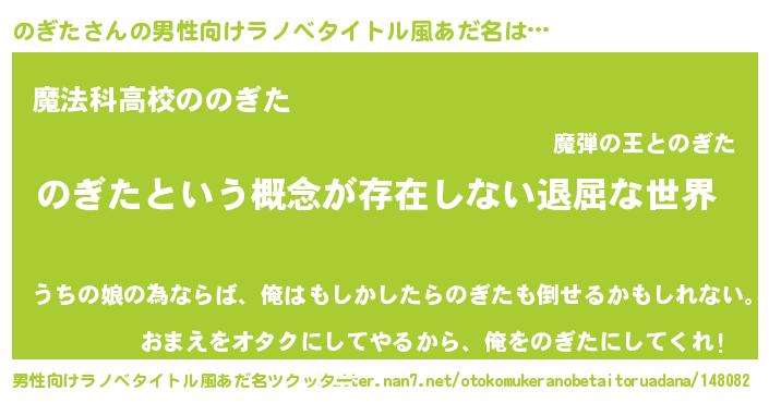 のぎたさんの男性向けラノベタイトル風あだ名をツクッター!