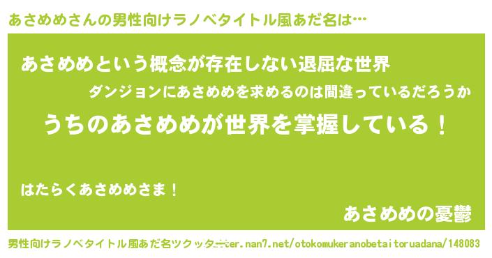 | 胡散臭い通販商品みたいなあだ名 | 『前代未聞の水素水…その名も「あさめめ」』 |