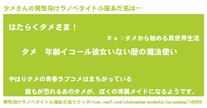 | ヘコむあだ名 | 『タメ(苦笑)』『つくし』『タメを』 |