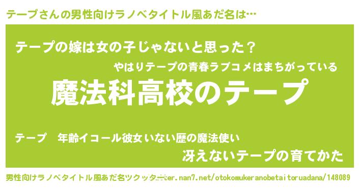 | 女子向けラノベタイトル風あだ名 | 『テープなんてお断りですっ。』 |