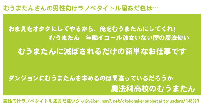 | ヒーロー風カッコイイあだ名 | 『天空の使者むうまたん』『魔戒騎士ムウ』 |
