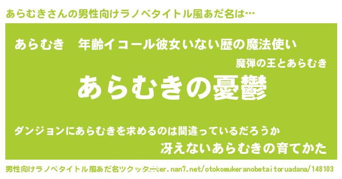 | 女子向けラノベタイトル風あだ名 | 『(仮)あらむきのやんごとなき事情』 |