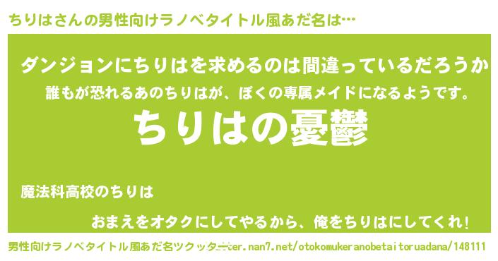 | 女子向けラノベタイトル風あだ名 | 『ちりは姫と円卓の騎士』 |