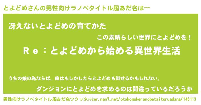 | 女子向けラノベタイトル風あだ名 | 『闇のとよどめ』『とよどめは平凡を望む』 |