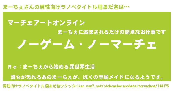 | 伝説のあだ名 | 『救世主となる占い師まーちぇ』 |