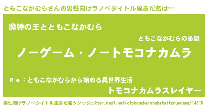 | 伝説のあだ名 | 『救世主となる錬金術士ともこなかむら』 |