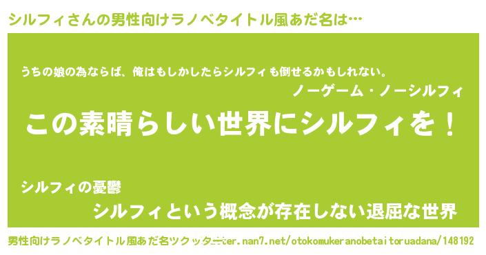 | 女子向けラノベタイトル風あだ名 | 『悪役シルフィに転生したようですが、知った事ではありません』 |
