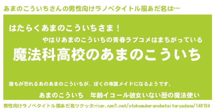 | 女子向けラノベタイトル風あだ名 | 『あまのこういちなんてお断りですっ。』 |