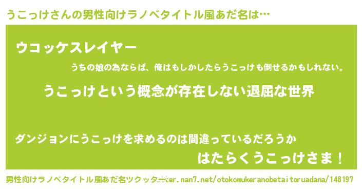 | 女子向けラノベタイトル風あだ名 | 『異世界で失敗しない100のうこっけ』 |