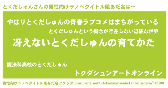 | 意味不明あだ名 | 『とくだしゅんフォーエバー』 |