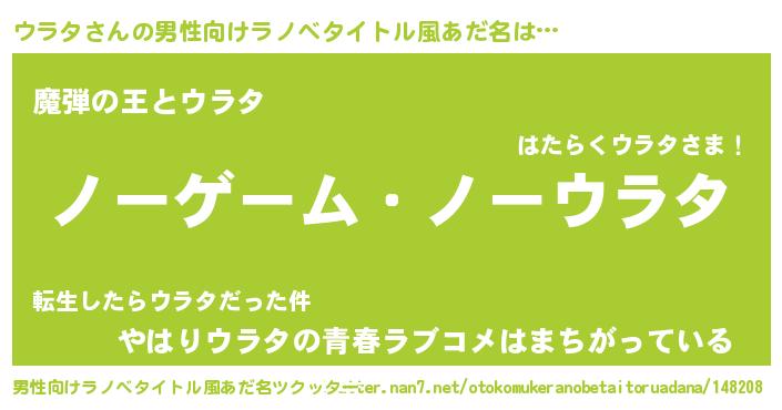 | 女子向けラノベタイトル風あだ名 | 『死神ウラタの再婚』『ウラタ伯爵の花嫁』 |