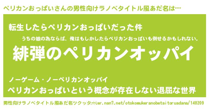 | 胡散臭い通販商品みたいなあだ名 | 『絶対に幸福をもたらす健康食品…その名も「ペリカンおっぱい」』 |
