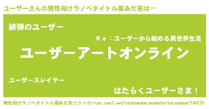| 女子向けラノベタイトル風あだ名 | 『ユーザー姫と円卓の騎士』 |