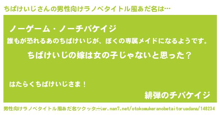 | 女子向けラノベタイトル風あだ名 | 『ちばけいじの卵を拾いまして』 |