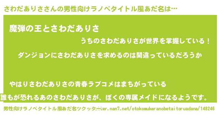 | 女子向けラノベタイトル風あだ名 | 『さわだありさの卵を拾いまして』 |