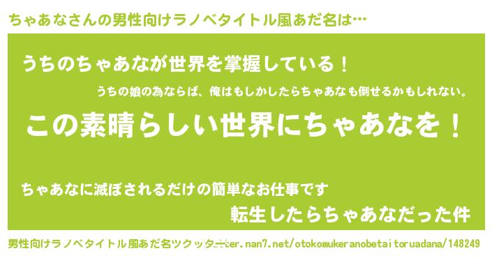 ちゃあなさんの男性向けラノベタイトル風あだ名をツクッター!