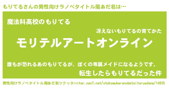 | 胡散臭い通販商品みたいなあだ名 | 『億万長者になれるブレスレット…その名も「もりてる」』 |
