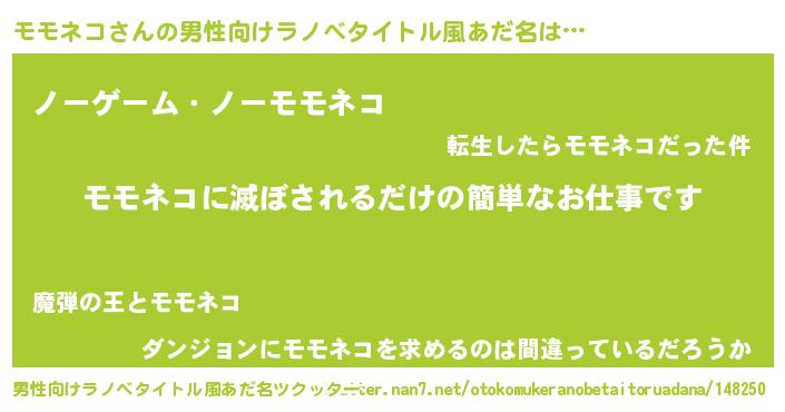 | 伝説のあだ名 | 『救世主となる占い師モモネコ』 |